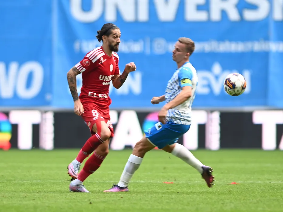 Eduard Marian Florescu si Nicusor Silviu Bancu in meciul de fotbal dintre Universitatea Craiova si FC Botosani, contand pentru Superliga Superbet, desfasurat pe Stadionul Ion Oblemenco din Craiova, duminica 1 octombrie 2023. © FOTO:Razvan Pasarica/SPORT PICTURES