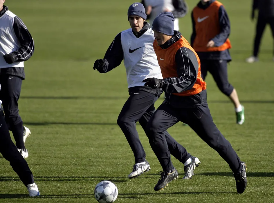 Ionut Rada, Abel Moreno (S), jucatori ai echipei Steaua, efectueaza un antrenament, in Bucuresti, joi, 20 noiembrie 2008. BOGDAN MARAN / MEDIAFAX FOTO