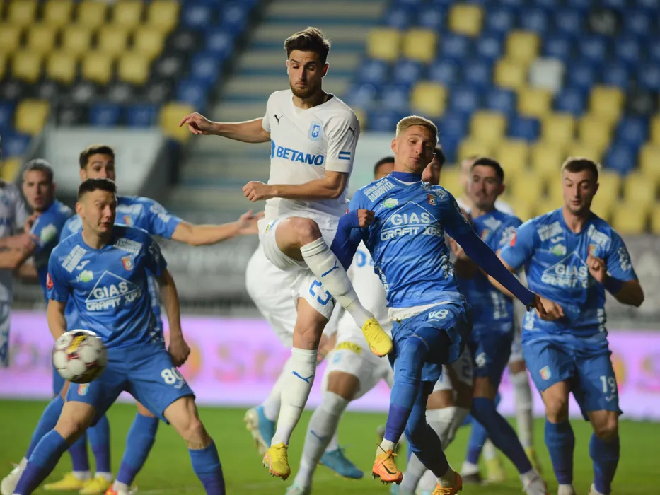 Cristian Mihai Capatina si Andrei Mihai Ionita in meciul de fotbal dintre Chindia Targoviste si Universitatea Craiova, contand pentru Superliga Superbet, desfasurat pe Stadionul Ilie Oana din Ploiesti, marti 29 noiembrie 2022. © FOTO:Cristi Stavri/SPORT PICTURES