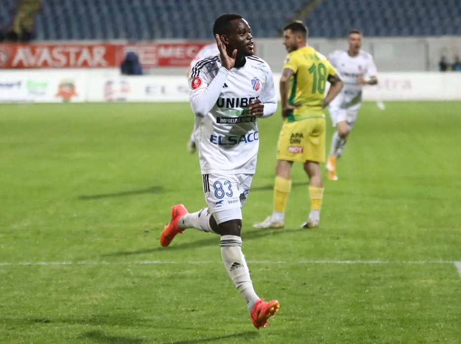 Aldair Caputa Ferreira după un gol marca în meciul de fotbal dintre FC Botoșani și CS Mioveni, contând pentru Baraj Superliga Superbet, desfășurat pe Stadionul Municipal din Botoșani, vineri 17 mai 2024. © FOTO: Ionuț TABULTOC/SPORT PICTURES