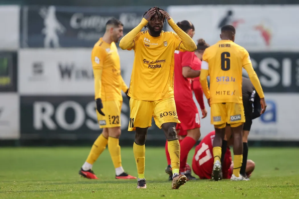 Herman Moussaki Düdelingen 11 kann Foulpfiff nicht fassen / Fussball BGL Ligue Luxemburg, 12. Spieltag, Saison 2023-2024 / 12.11.2023 / F91 Düdelingen - FC Swift Hesperingen Dudelange, Duedelingen, Hesperange / Stade Jos Nosbaum, Düdelingen / *** Herman Moussaki Dudelange 11 cant believe the foul whistle Football BGL Ligue Luxembourg, Matchday 12, Season 2023 2024 12 11 2023 F91 Dudelange FC Swift Hesperange Dudelange, Duedelange, Hesperange Stade Jos Nosbaum, Dudelange,Image: 821695677, License: Rights-managed, Restrictions: PUBLICATIONxNOTxINxLUX, Model Release: no