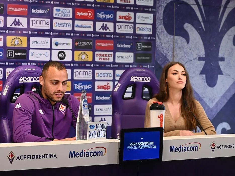 Fotbalistul Fiorentinei, fascinat de ofițerul de presă Rossella Petrillo! A sorbit-o din priviri, iar imaginile fac înconjurul lumii | VIDEO