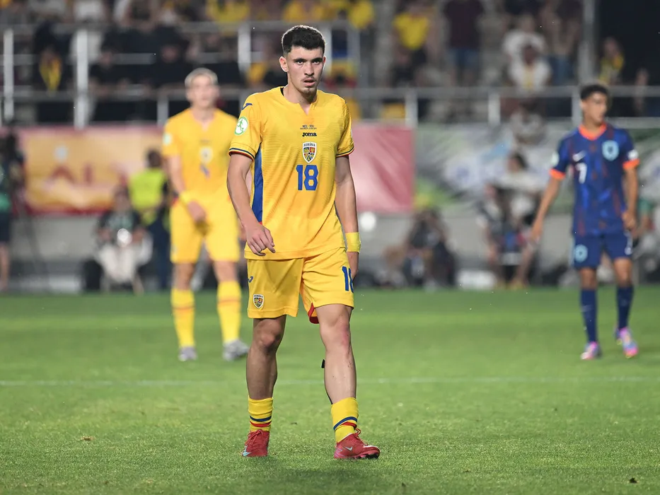 Remus-Gabriel Guțea reactioneaza in meciul de fotbal dintre Olanda U19 si Romania U19, contand pentru Campionatul European U19, desfasurat pe Stadionul Giulesti din Bucuresti, luni 23 iunie 2025. © FOTO:Razvan Pasarica/SPORT PICTURES