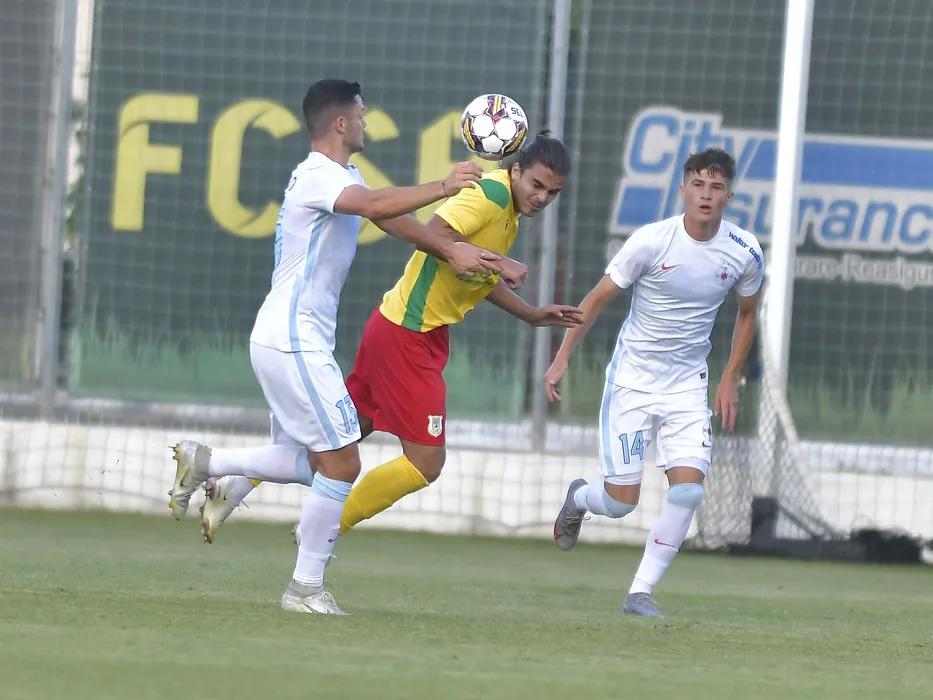 Vlad Mitrea si Matei Tanasa in meciul amical de fotbal dintre FCSB si CS Mioveni, desfasurat la Baza FCSB din Berceni, miercuri 6 iulie 2022. © FOTO:Razvan Pasarica/SPORT PICTURES
