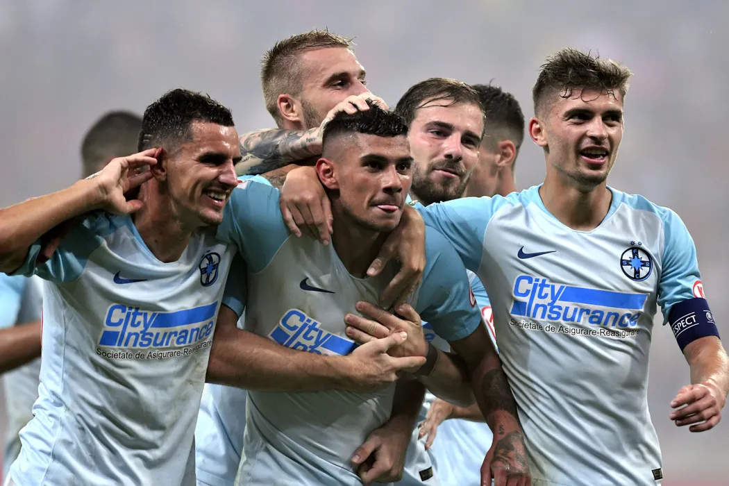 Bucurie stelista cu Romario Benzar,Florinel Coman,Mihai Balasa si Florin Tanase in meciul de fotbal dintre FC Steaua Bucuresti si Dinamo Bucuresti, din etapa a II-a a Ligii 1, disputat pe Arena Nationala din Bucuresti, duminica, 29 iulie 2018.© FOTO: Razvan Pasarica / Sport Pictures