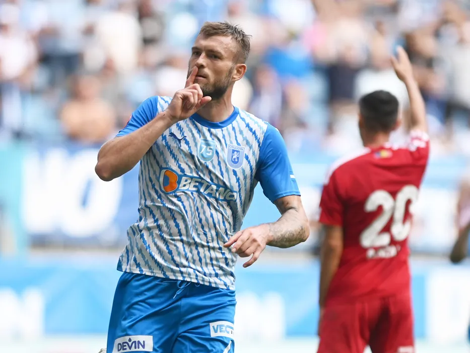 Alexandru Cretu se bucura dupa un gol marcat in meciul de fotbal dintre Universitatea Craiova si FC Botosani, contand pentru Superliga Superbet, desfasurat pe Stadionul Ion Oblemenco din Craiova, duminica 1 octombrie 2023. © FOTO:Razvan Pasarica/SPORT PICTURES