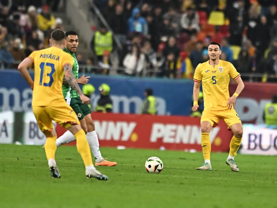 Josh Magennis si Adrian Sut in meciul amical de fotbal dintre Romania si Irlanda de Nord, desfasurat pe Arena Nationala, vineri 22 martie 2024. © FOTO:Razvan Pasarica/SPORT PICTURES