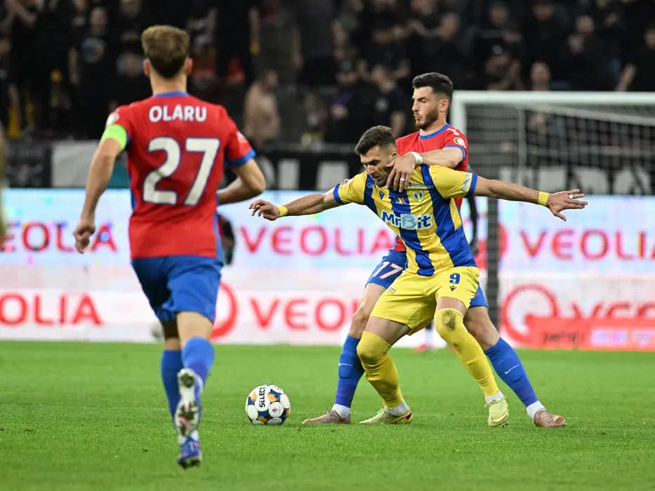 Adi Marian Chica Rosa si Mihai Popescu in meciul dintre FCSB si Petrolul Ploiesti, contand pentru Play out-ul Superligii Superbet, desfasurat pe Arena Nationala din Bucuresti, vineri 24 aprilie 2026. © FOTO:Razvan Pasarica/SPORT PICTURES