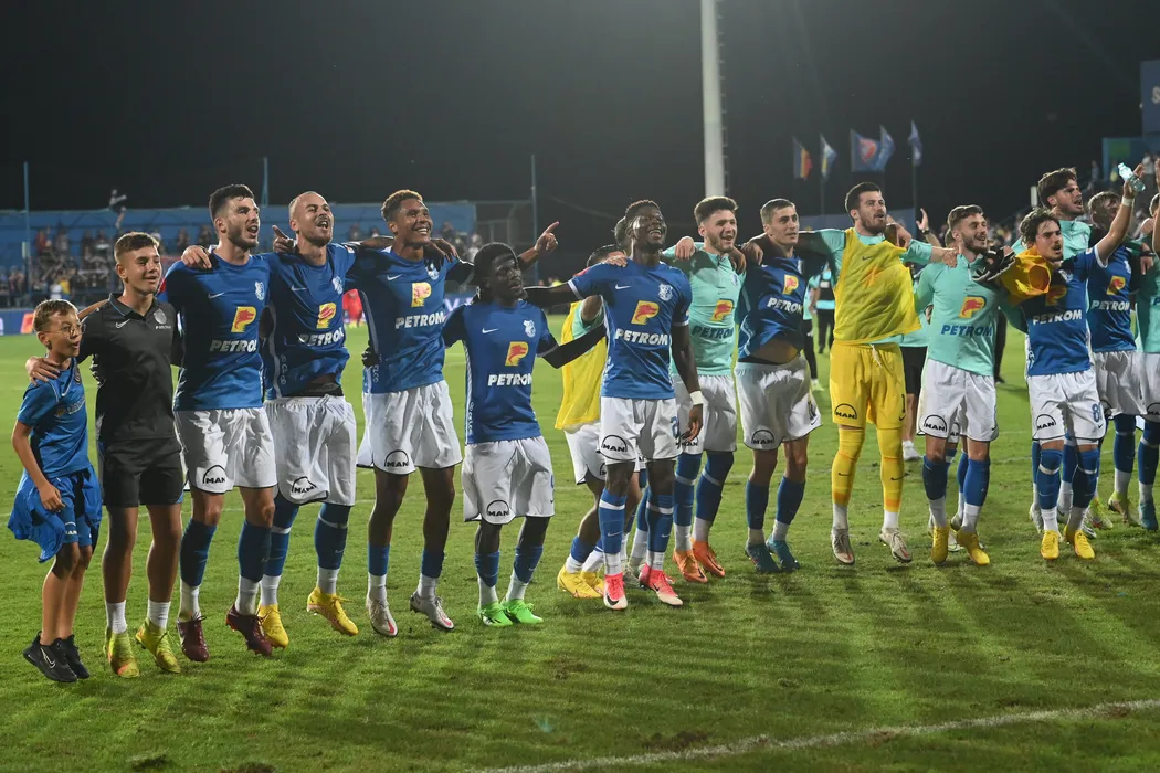 Bucurie a fotbalistilor constanteni Mihai Popescu, Denis Alibec, Jeremy Jimmy Theophile Corinus, Kevin Doukoure Grobry, Enagnon David Kiki, Dan Sirbu,Ionut Justinian Larie, Alexandru Buzbuchi, Roberto Carlo Casap, Alexi Paul Pitu si Tudor Cristian Baluta dupa meciul de fotbal dintre Farul Constanta si FCSB, contand pentru Superliga Superbet, desfasurat pe Stadionul central al Academiei Gheorghe Hagi din Ovidiu, miercuri 31 august 2022. © FOTO:Razvan Pasarica/SPORT PICTURES