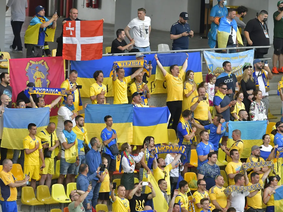 Suporterii ucrainieni la meciul de fotbal dintre Ucraina si Austria, din cadrul EURO 2020, desfasurat pe Arena Nationala din Bucuresti, luni 21 iunie 2021. © FOTO:Razvan Pasarica/SPORT PICTURES