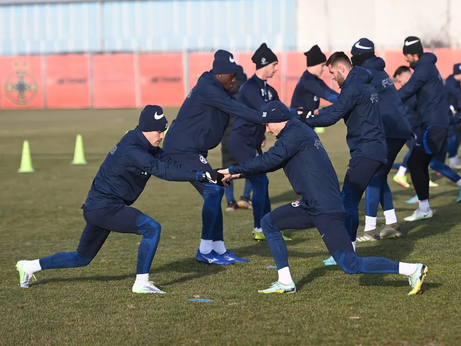 Primul antrenament din noul an al fotbalistilor de la FCSB printre care Darius Dumitru Olaru, Adrian Gheorghe Sut, Joyskim Aurelien Dawa Tchakonte si Ovidiu Marian Popescu, desfasurat la baza FCSB din Bucuresti, joi 5 ianuarie 2023. © FOTO:Razvan Pasarica/SPORT PICTURES