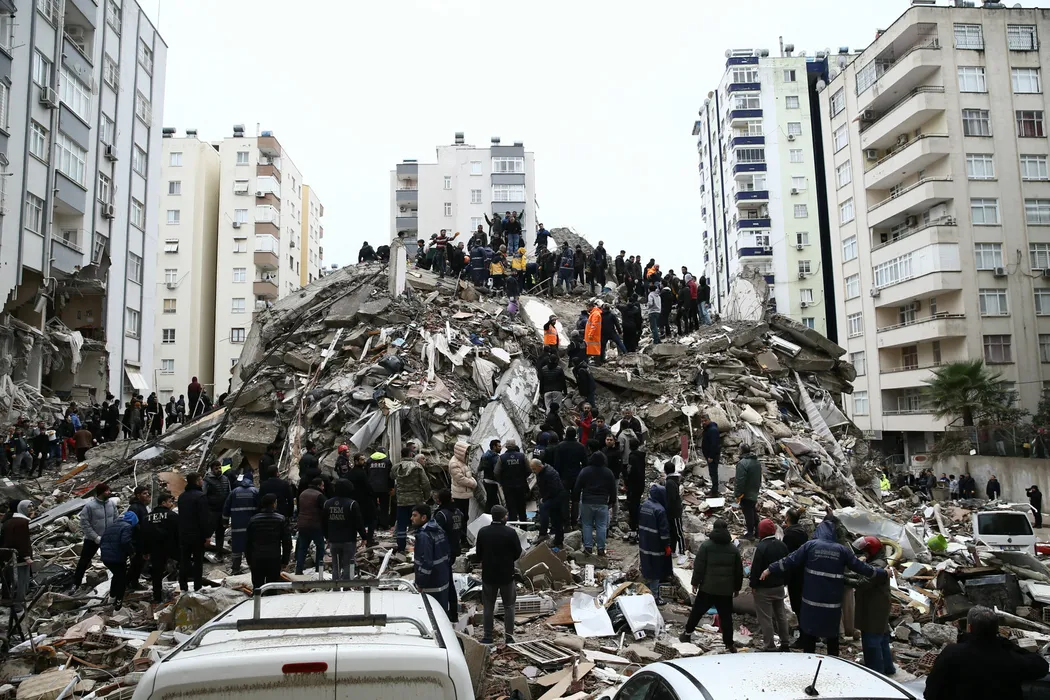 ADANA, TURKIYE - FEBRUARY 06: Search and rescue operation is being carried out at the debris of a building in Cukurova district of Adana after a 7.4 magnitude earthquake hit southern provinces of Turkiye, in Adana, Turkiye on February 6, 2023. Eren Bozkurt / Anadolu Agency/ABACAPRESS.COM