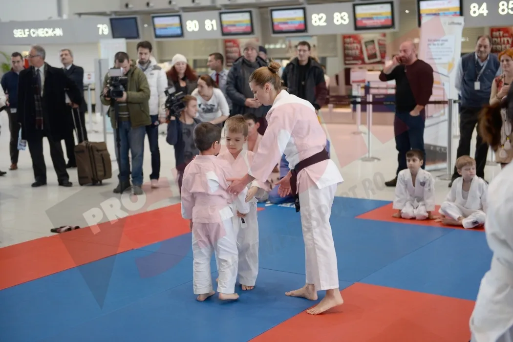 FOTO: Alina Dumitru, demonstrație de judo în aeroport. Jucătorii de la ACS Poli, spectatori de lux