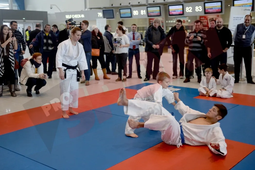 FOTO: Alina Dumitru, demonstrație de judo în aeroport. Jucătorii de la ACS Poli, spectatori de lux