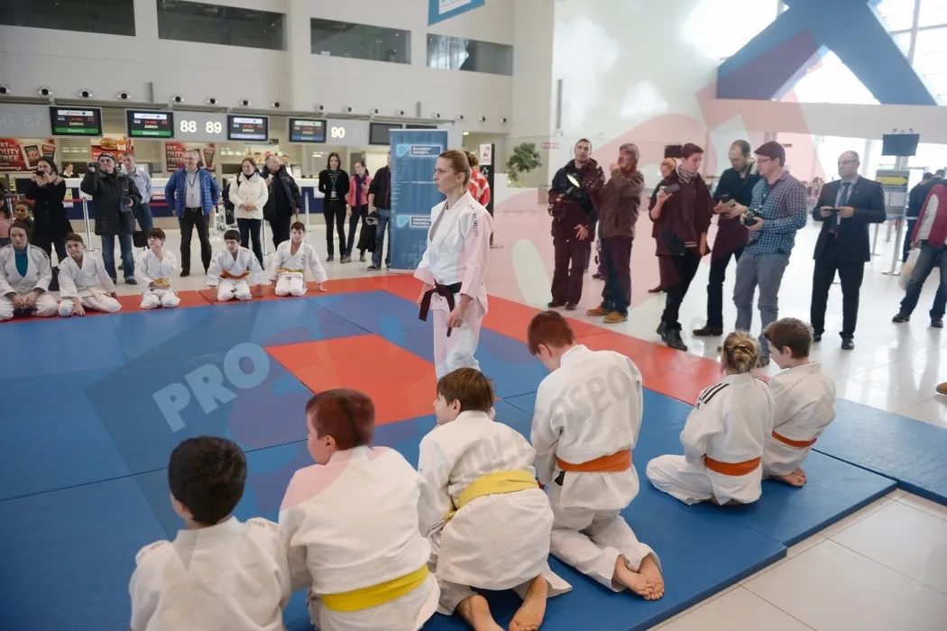 FOTO: Alina Dumitru, demonstrație de judo în aeroport. Jucătorii de la ACS Poli, spectatori de lux