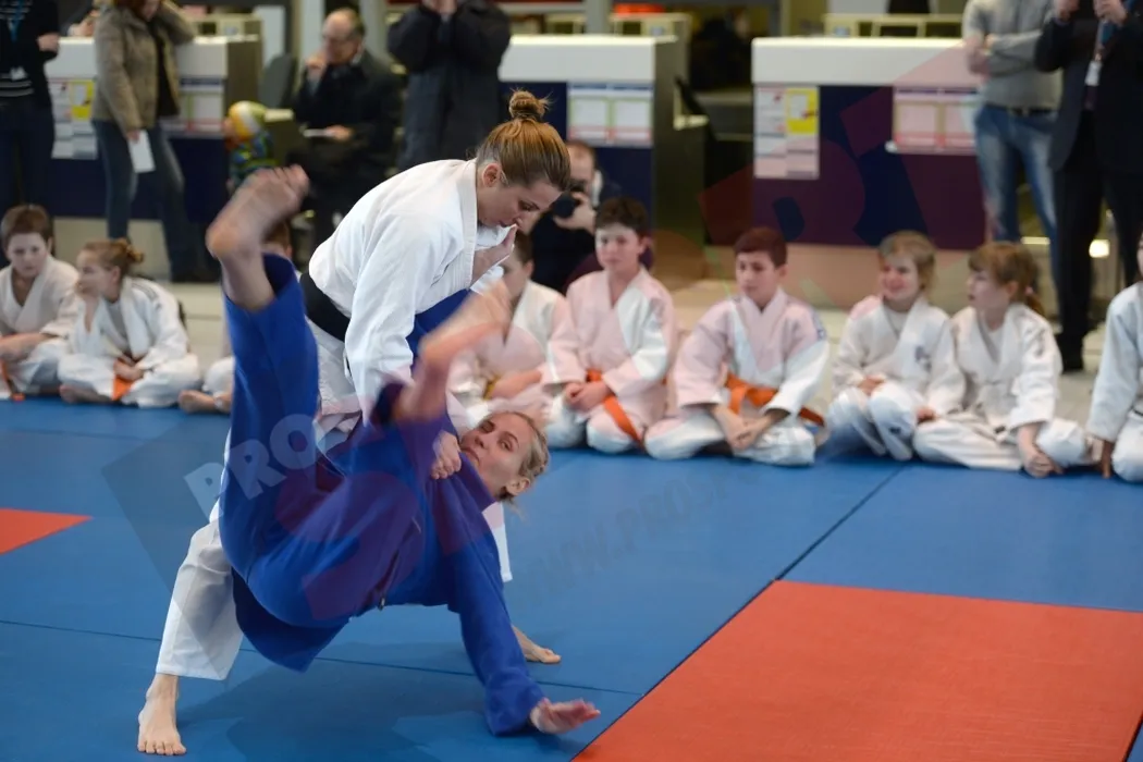 FOTO: Alina Dumitru, demonstrație de judo în aeroport. Jucătorii de la ACS Poli, spectatori de lux