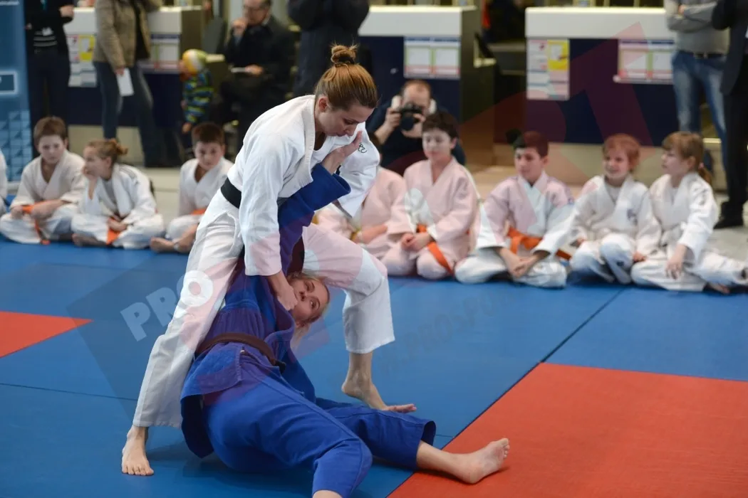 FOTO: Alina Dumitru, demonstrație de judo în aeroport. Jucătorii de la ACS Poli, spectatori de lux