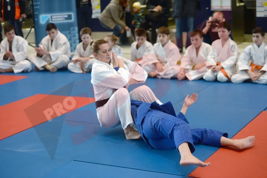 FOTO: Alina Dumitru, demonstrație de judo în aeroport. Jucătorii de la ACS Poli, spectatori de lux