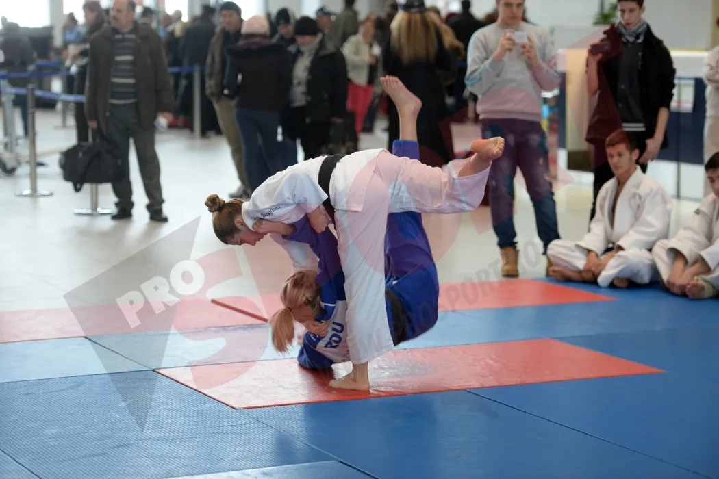 FOTO: Alina Dumitru, demonstrație de judo în aeroport. Jucătorii de la ACS Poli, spectatori de lux
