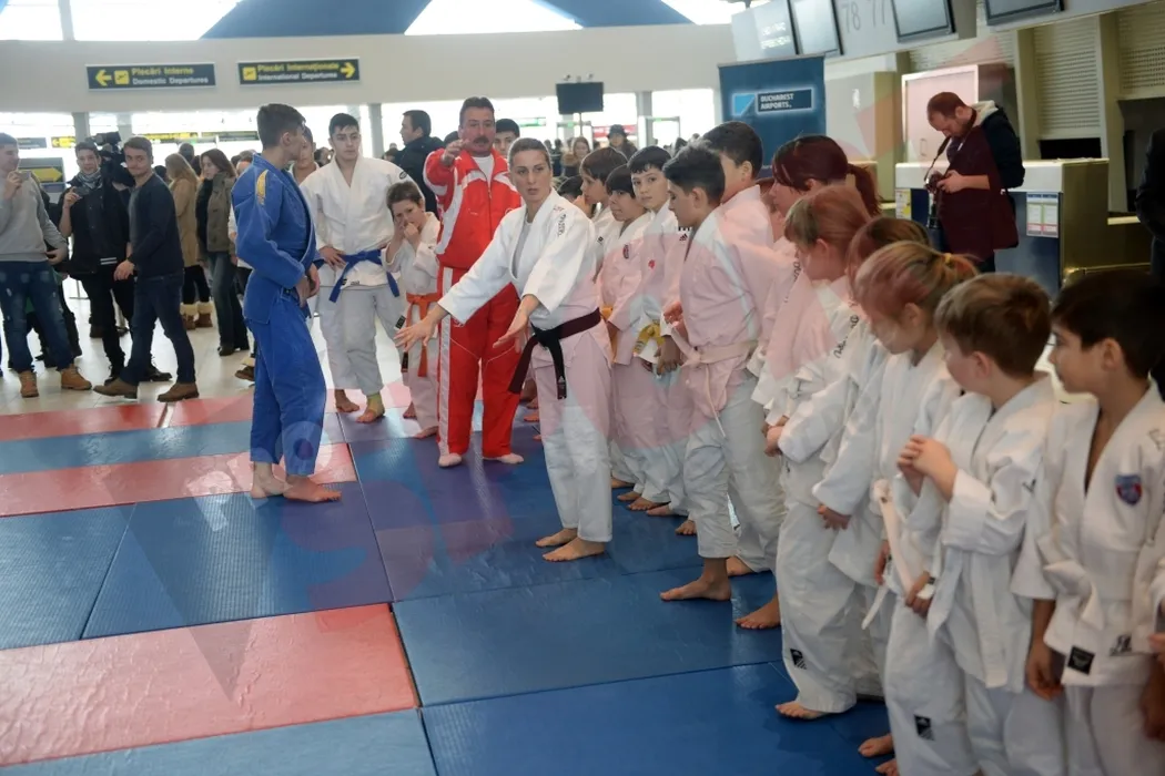 FOTO: Alina Dumitru, demonstrație de judo în aeroport. Jucătorii de la ACS Poli, spectatori de lux