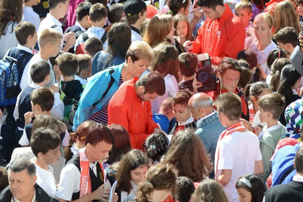 FOTO Antrenorul Mulțescu și mai mulți jucători dinamoviști au acordat autografe la școala generală 195