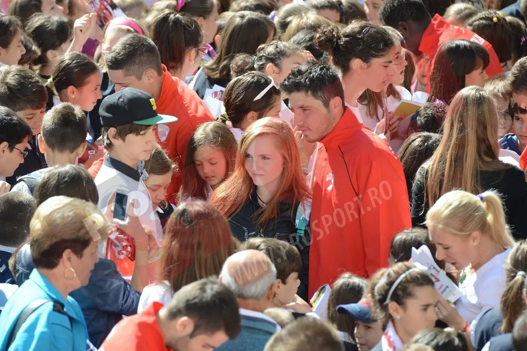 FOTO Antrenorul Mulțescu și mai mulți jucători dinamoviști au acordat autografe la școala generală 195