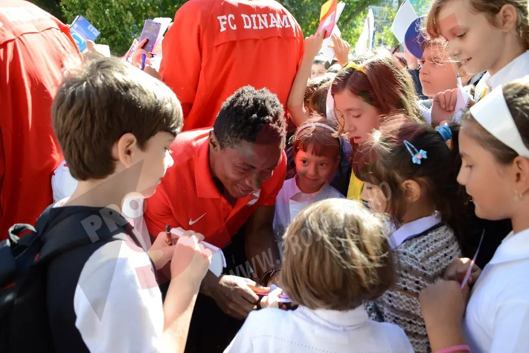 FOTO Antrenorul Mulțescu și mai mulți jucători dinamoviști au acordat autografe la școala generală 195