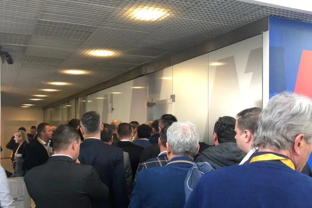 FOTO | „Atârnătorii fotbalului românesc”: membrii Adunării Generale a FRF, omeniți cu chiolhan pantagruelic și geamantane la hotelul lui Negoiță. Coadă uriașă la punguțe cu cadouri, la sfârșitul ședinței