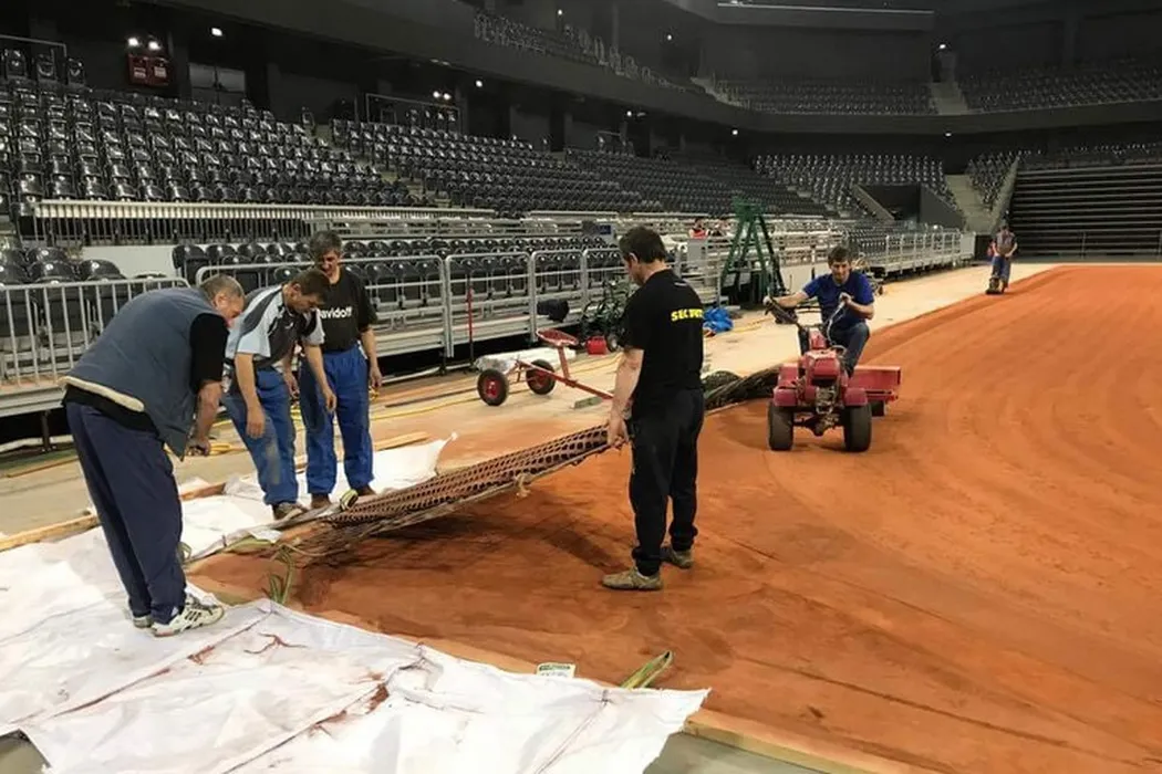 FOTO | Au început pregătirile pentru meciul de Fed Cup dintre România și Elveția. Sala Polivalentă din Cluj-Napoca, „înghițită” de zgură