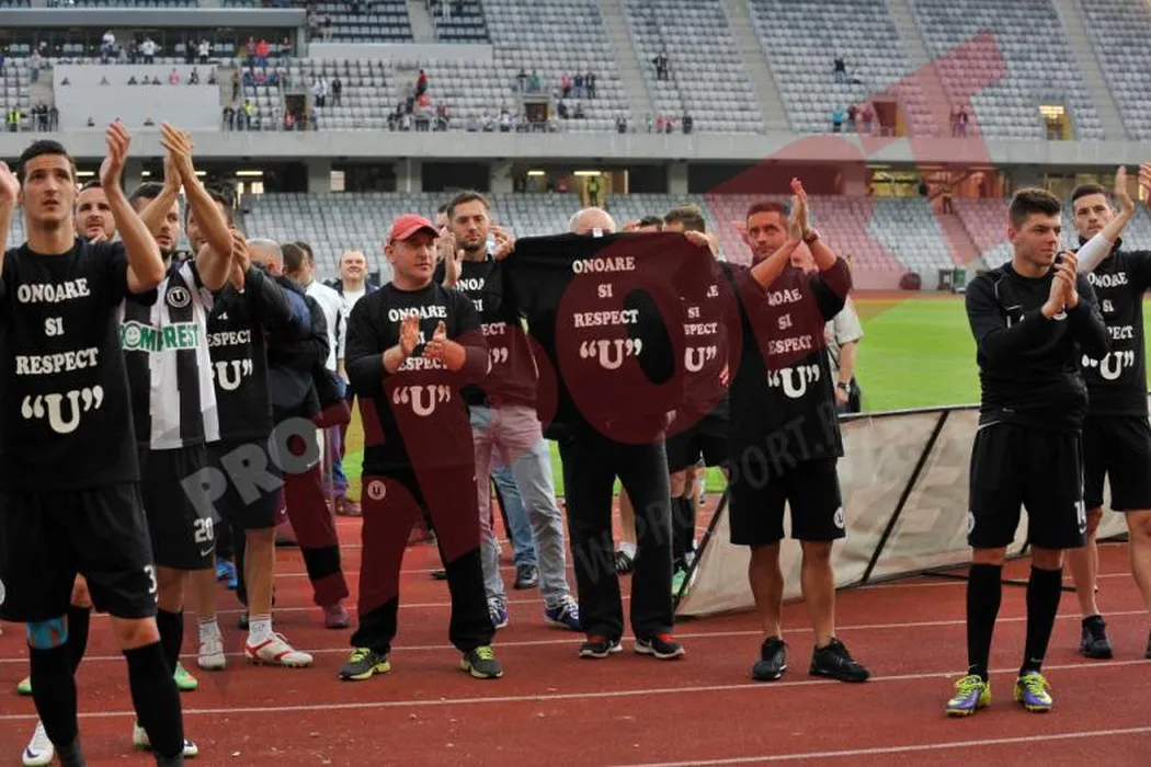FOTO | Au ratat 600.000 de euro, dar s-au ales cu iubirea fanilor. Jucătorii lui „U” s-au îmbrățișat cu suporterii după meciul cu Pandurii