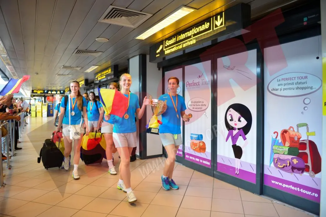 FOTO | Campioanele mondiale au sosit acasă și au fost primite pe aeroport de peste 100 de oameni. Secundul Kozma, după prezentarea trofeului: „Un fleac! Le-am ciuruit”
