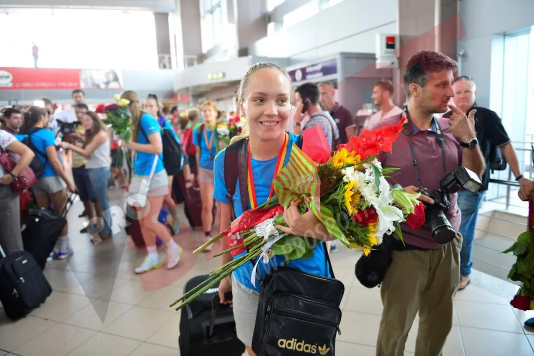 FOTO | Campioanele mondiale au sosit acasă și au fost primite pe aeroport de peste 100 de oameni. Secundul Kozma, după prezentarea trofeului: „Un fleac! Le-am ciuruit”