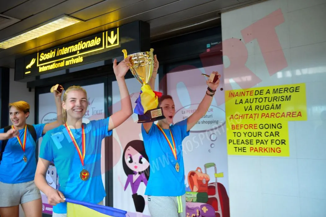 FOTO | Campioanele mondiale au sosit acasă și au fost primite pe aeroport de peste 100 de oameni. Secundul Kozma, după prezentarea trofeului: „Un fleac! Le-am ciuruit”