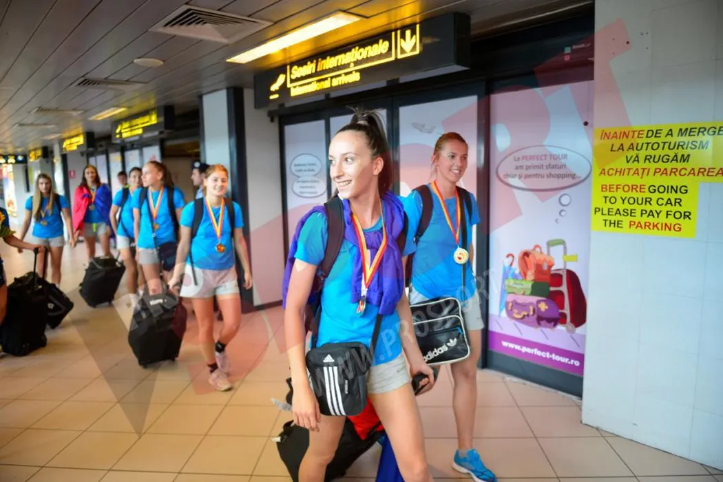 FOTO | Campioanele mondiale au sosit acasă și au fost primite pe aeroport de peste 100 de oameni. Secundul Kozma, după prezentarea trofeului: „Un fleac! Le-am ciuruit”