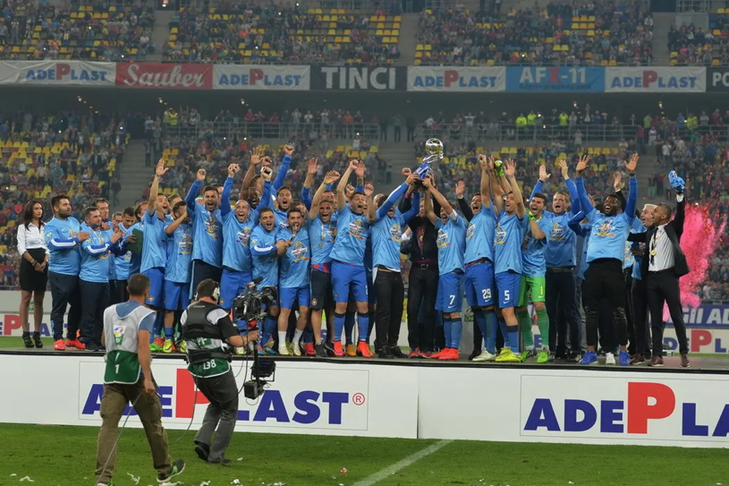 FOTO | Căpitanul Stelei, Alexandru Chipciu, a primit trofeul Cupei Ligii de la Ilie Năstase