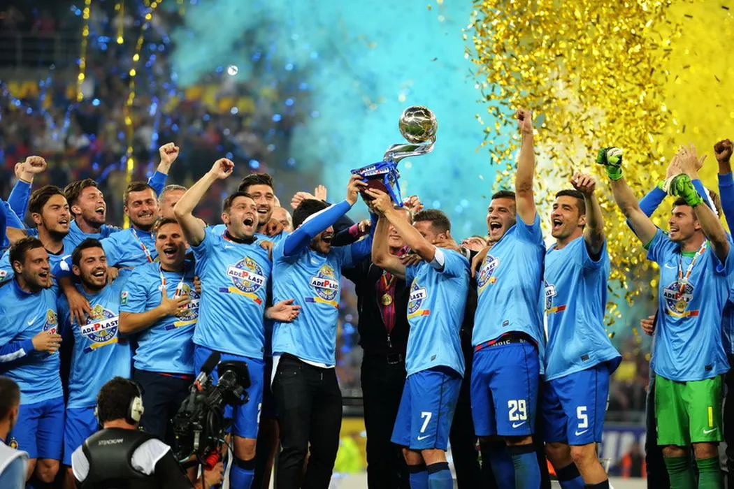 FOTO | Căpitanul Stelei, Alexandru Chipciu, a primit trofeul Cupei Ligii de la Ilie Năstase