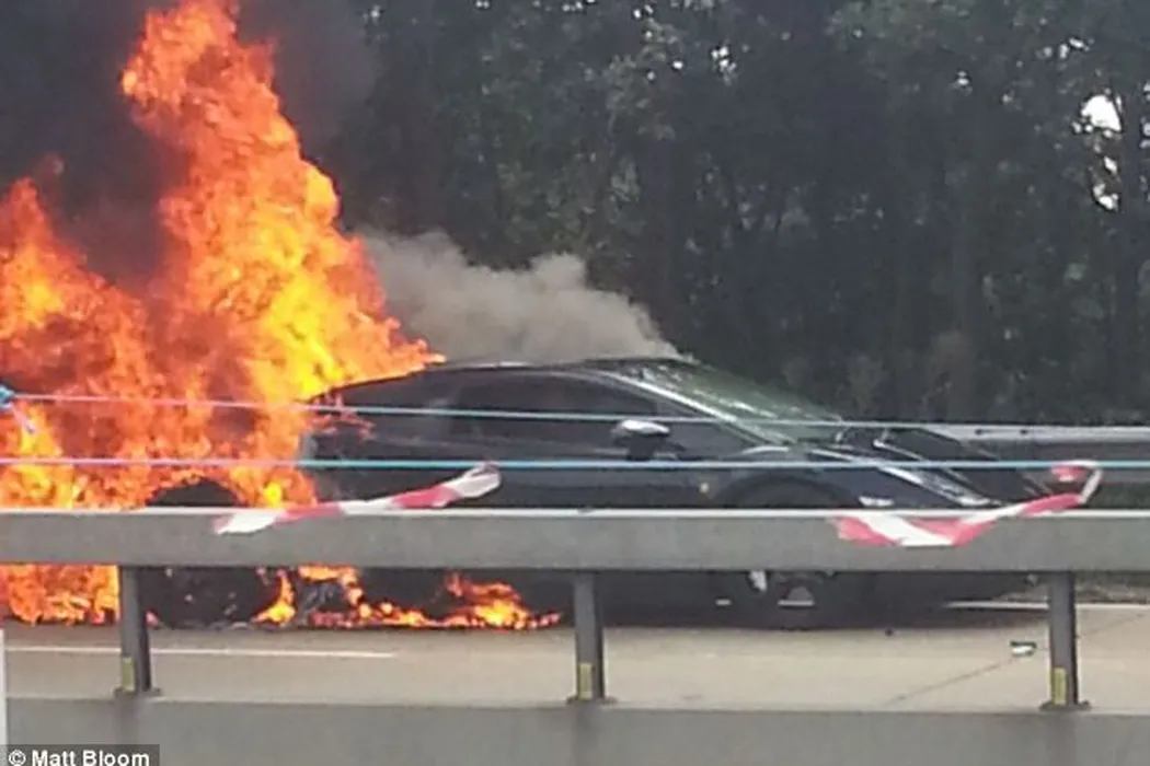 FOTO: Ce se întâmplă când un Lamborghini Gallardo ia foc! Șoseaua de centură a Londrei, blocată pentru mai bine de două ore