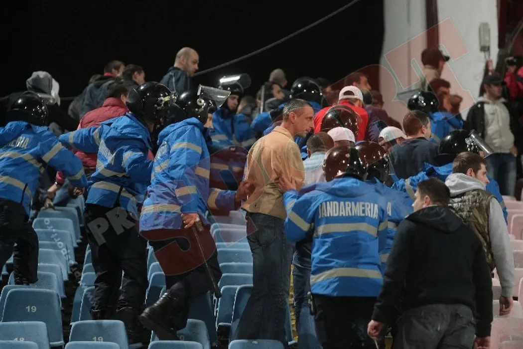 FOTO Ciocniri între jandarmi și rapidiști!** Câțiva giuleșteni s-au infiltrat pe stadion și au fost evacuați