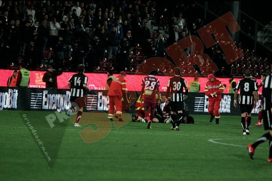 FOTO Claudiu Niculescu, accidentare foarte gravă!** A fost scos pe targă, cu masca de oxigen pe față și dus direct în salvare