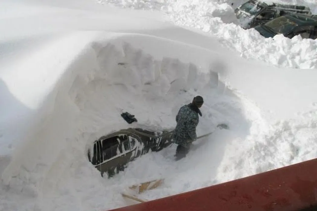 FOTO** Credeți că noi avem o iarnă grea? Un rus și-a găsit mașina acoperită de un munte de zăpadă
