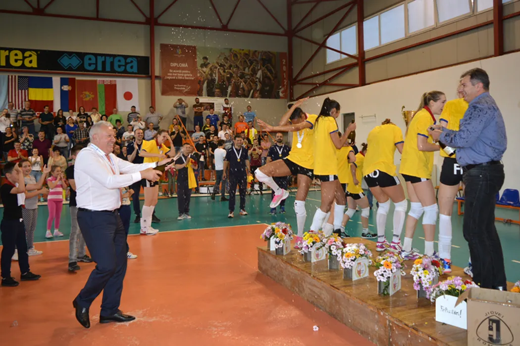 FOTO | CS Alba Blaj a declanșat fiesta la finalul meciului cu Dinamo. Echipa de volei feminin a câștigat al treilea titlu consecutiv de campioană