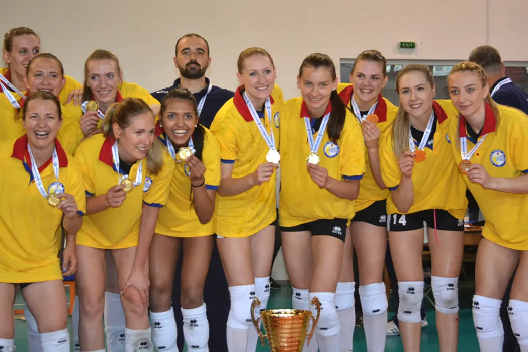 FOTO | CS Alba Blaj a declanșat fiesta la finalul meciului cu Dinamo. Echipa de volei feminin a câștigat al treilea titlu consecutiv de campioană