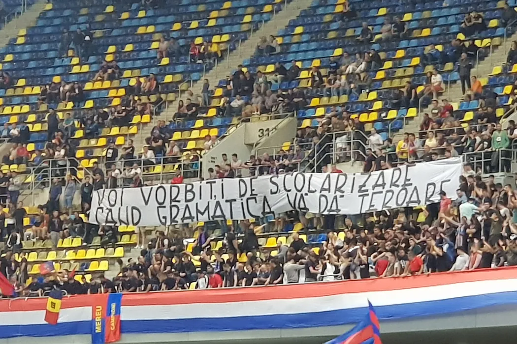 FOTO | Cum se pot contra două galerii și fără să împartă pumni: ironii, contra-mesaje și cinstirea gloriilor. Toate bannerele afișate de suporteri în timpul meciului Steaua – Academia Rapid