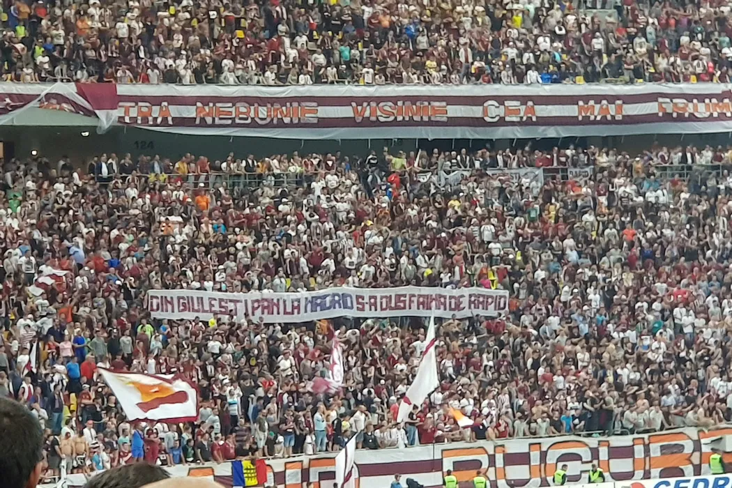 FOTO | Cum se pot contra două galerii și fără să împartă pumni: ironii, contra-mesaje și cinstirea gloriilor. Toate bannerele afișate de suporteri în timpul meciului Steaua – Academia Rapid