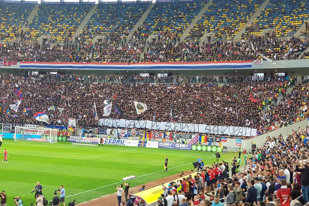 FOTO | Cum se pot contra două galerii și fără să împartă pumni: ironii, contra-mesaje și cinstirea gloriilor. Toate bannerele afișate de suporteri în timpul meciului Steaua – Academia Rapid