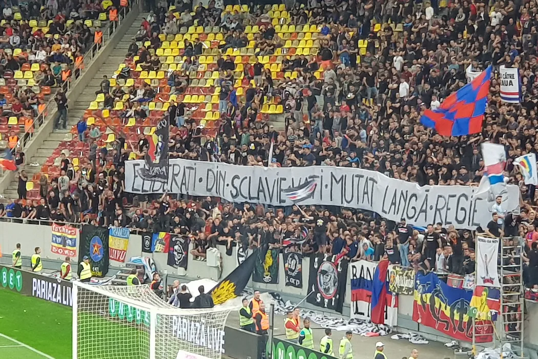 FOTO | Cum se pot contra două galerii și fără să împartă pumni: ironii, contra-mesaje și cinstirea gloriilor. Toate bannerele afișate de suporteri în timpul meciului Steaua – Academia Rapid