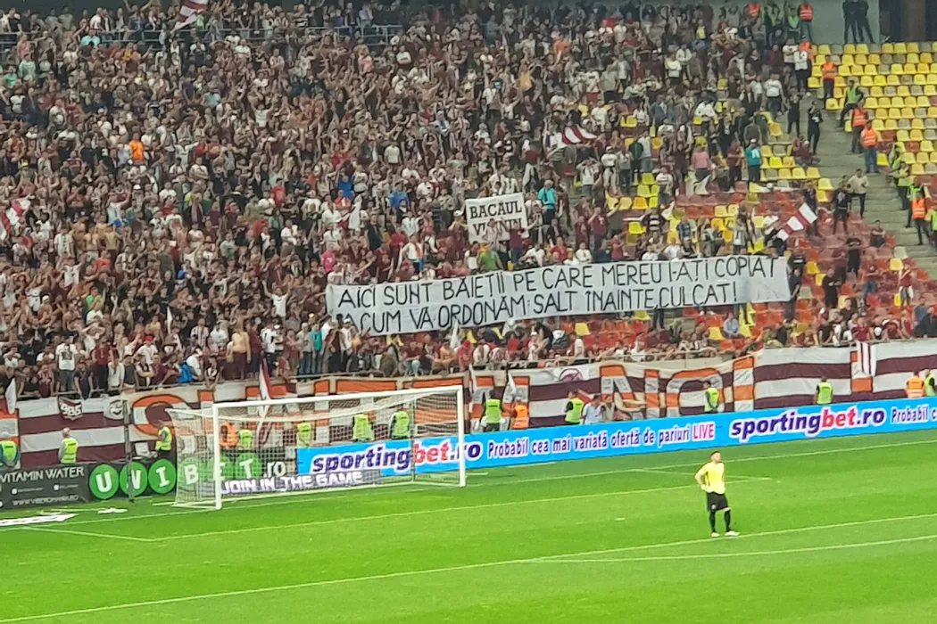 FOTO | Cum se pot contra două galerii și fără să împartă pumni: ironii, contra-mesaje și cinstirea gloriilor. Toate bannerele afișate de suporteri în timpul meciului Steaua – Academia Rapid