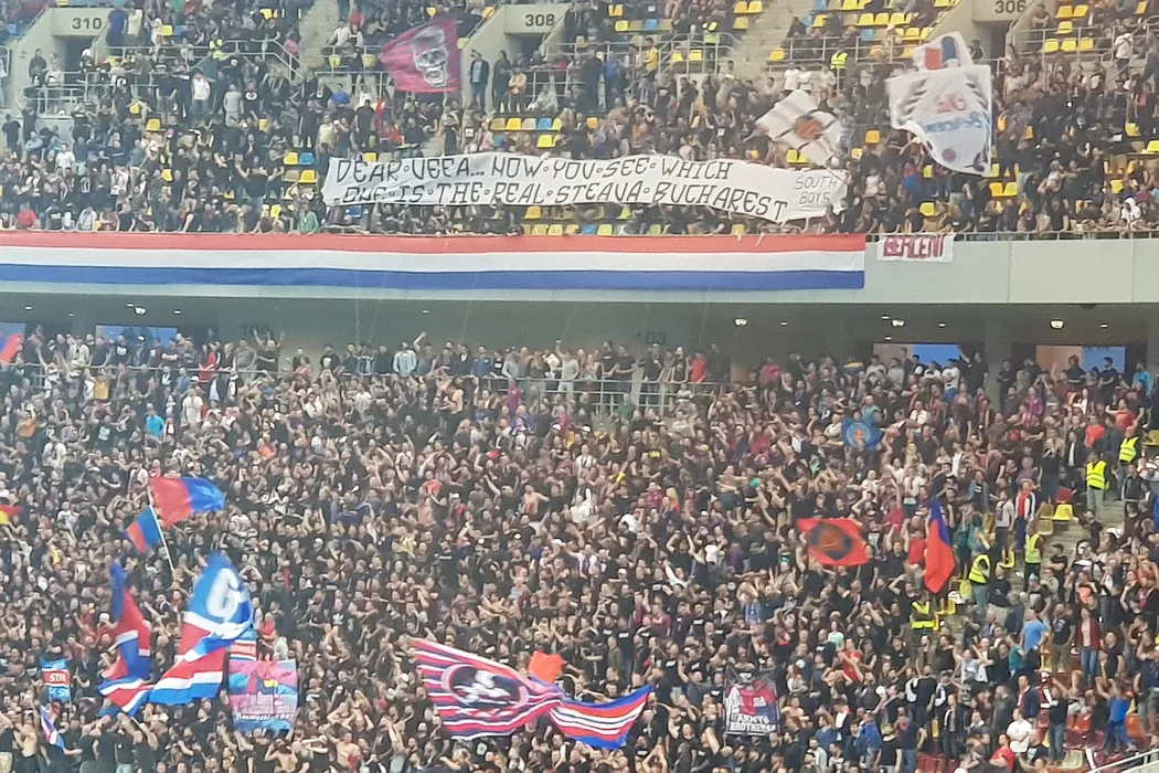 FOTO | Cum se pot contra două galerii și fără să împartă pumni: ironii, contra-mesaje și cinstirea gloriilor. Toate bannerele afișate de suporteri în timpul meciului Steaua – Academia Rapid