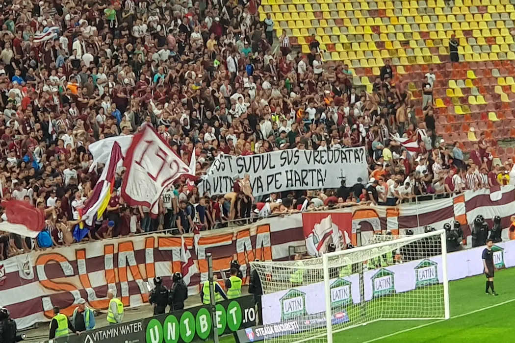 FOTO | Cum se pot contra două galerii și fără să împartă pumni: ironii, contra-mesaje și cinstirea gloriilor. Toate bannerele afișate de suporteri în timpul meciului Steaua – Academia Rapid