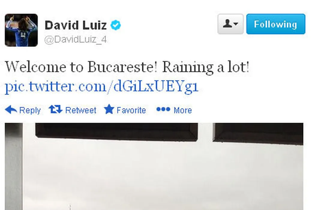 FOTO: David Luiz a postat pe Twitter o imagine surprinsă din camera de hotel: „Plouă foarte mult în București”